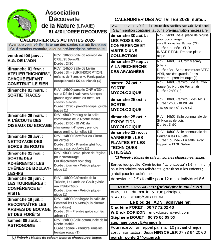 L’ADN c’est quand et où ? Le programme des sorties pour l’année 2025 : cliquer ici