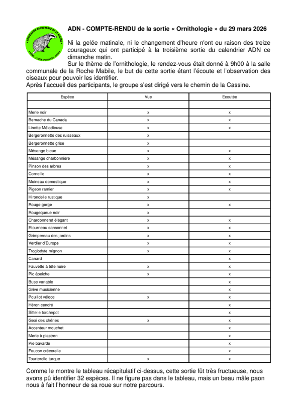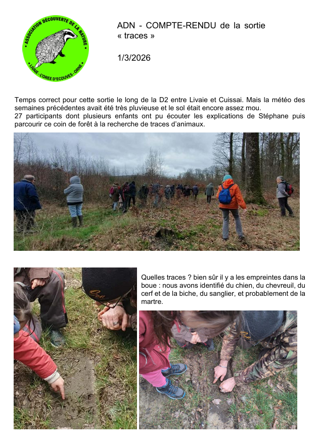 L’ADN c’est quand et où ? Le programme des sorties pour l’année 2026 :cliquer ici