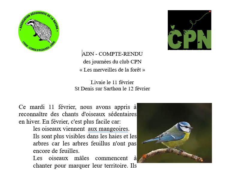 Les journées du 11 et 12 février 2025 au club CPN « Les merveilles de la forêt »