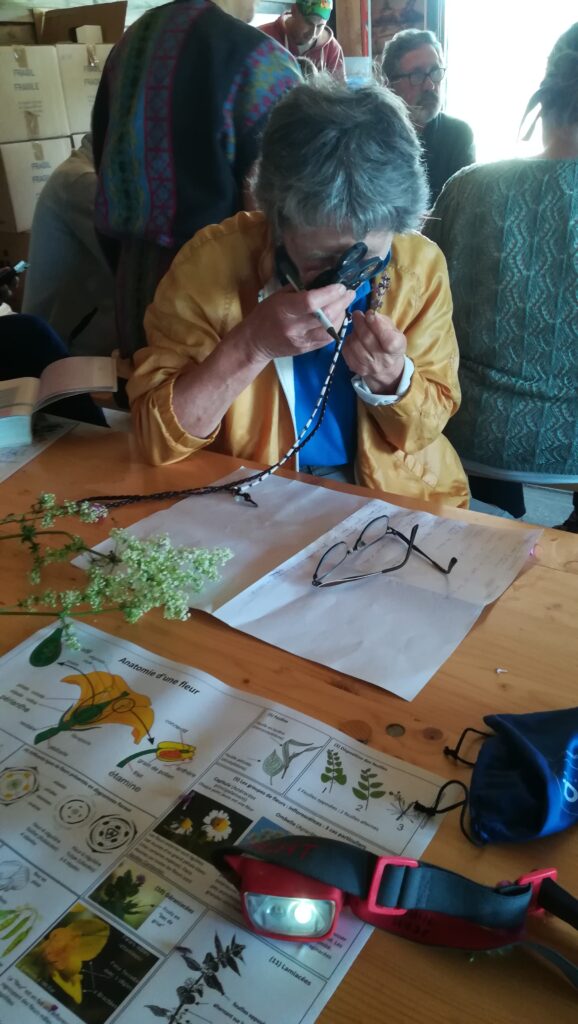 A l’heure du déjeuné, nous avons partagé un pique nique convivial en extérieur, puis retour en salle ou chacun des présents a pu s’entrainer à reconnaitre les familles sur les fleurs que Jean avait préparé.