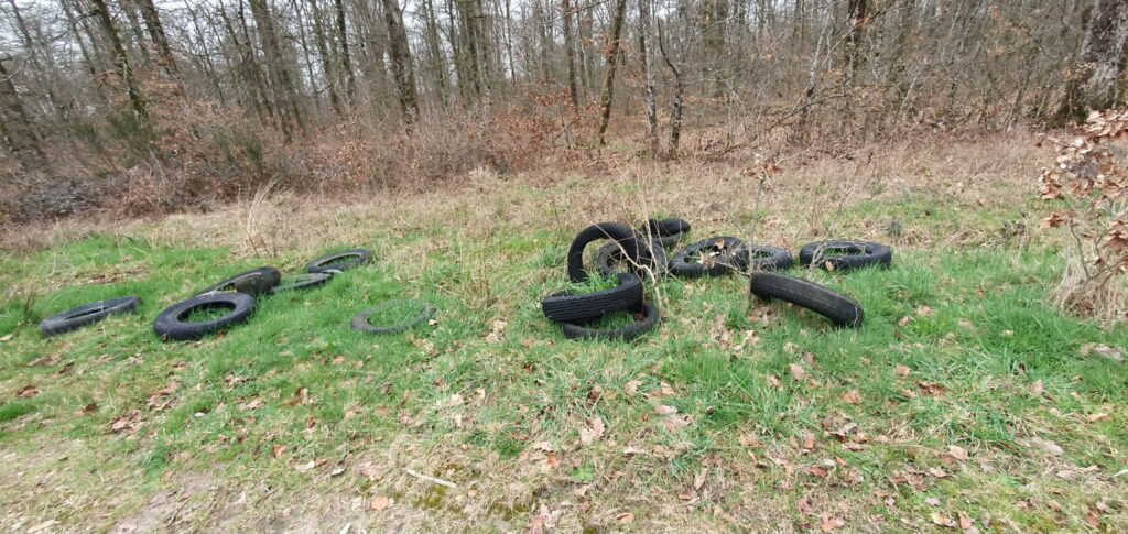 Et enfin, hélas, des traces dont on se passerait bien, celles de certains humains irrespectueux de notre belle forêt et qui au lieu de respecter les réseaux d’élimination polluent la nature.