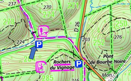 En raison des travaux forestiers à cet endroit, nous vous donnons rendez -vous sur le parking voisin qui se trouve sur la droite lorsque vous allez vers le Chêne au Verdier par la petite route.