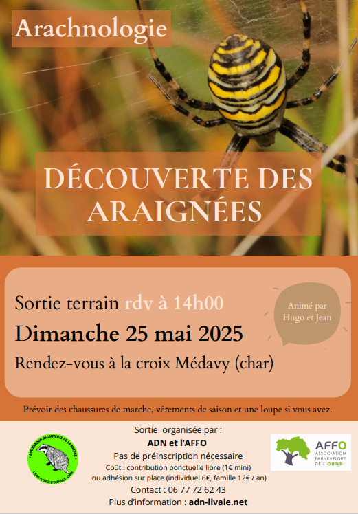 Amis des araignées, bonjour ! La prochaine sortie organisée sur ce thème sera le dimanche 25 mai 25.