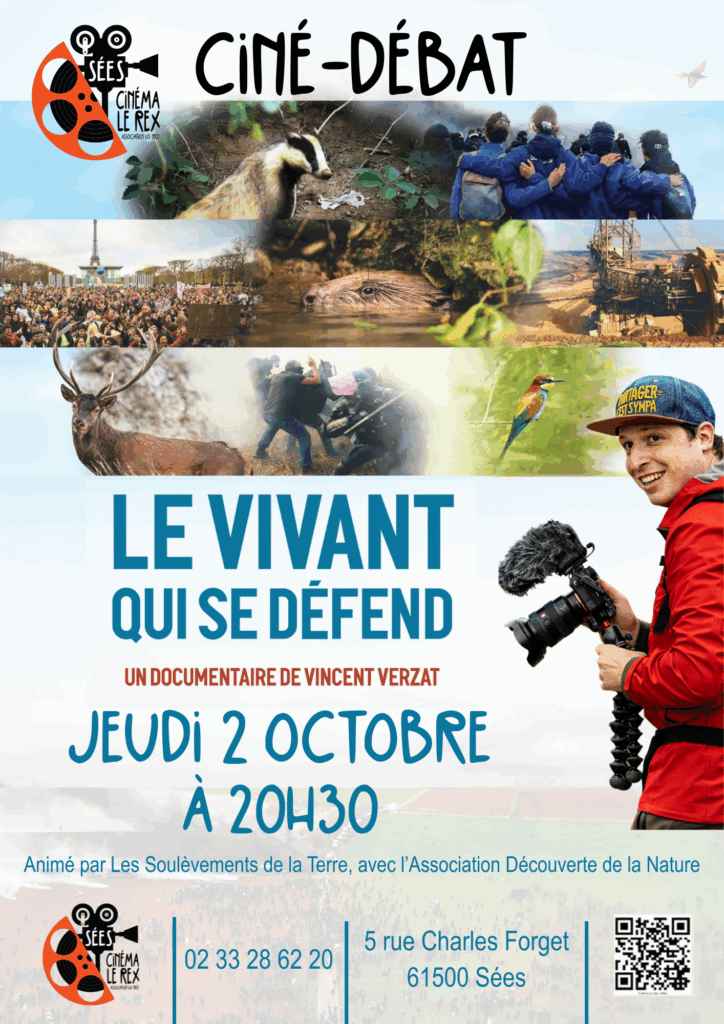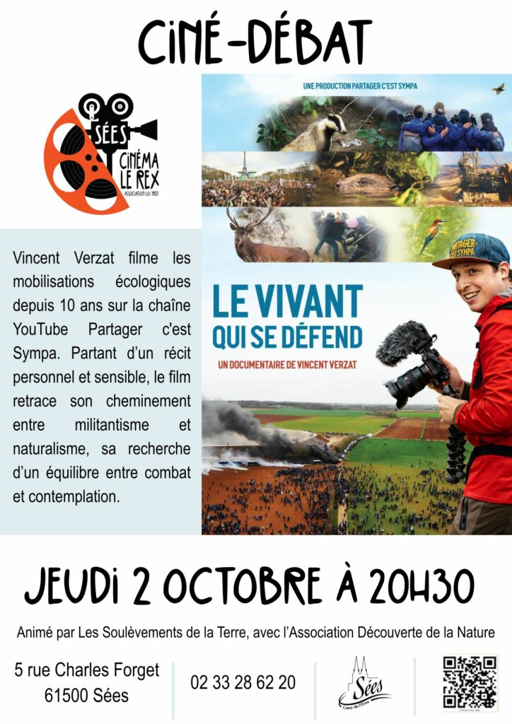 Grace au concours de l’association » Ciné Cité » le film documentaire » Le vivant qui se défend » sera projeté le mardi 23 septembre 2025 à 20h30 au cinéma Planet’Ciné d’Alençon.