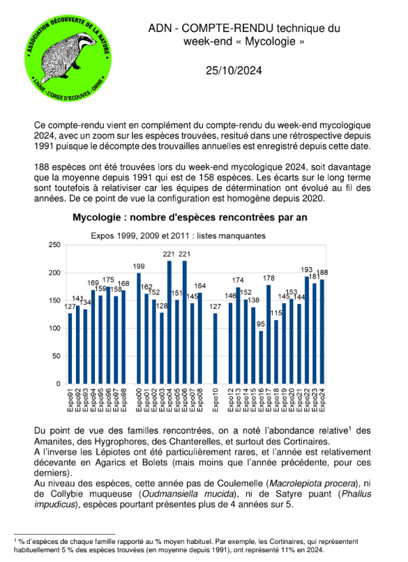 Pour vous, Jean Hirschler a finalisé le compte-rendu technique de la mycologie 2024
