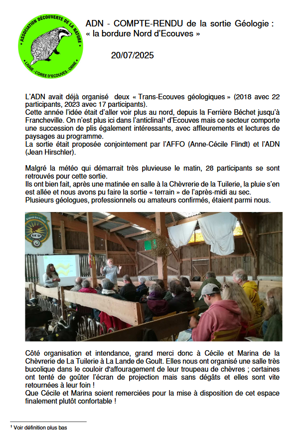 Voici le compte-rendu de la sortie géologie du 20 juillet 2025 sur la géologie.