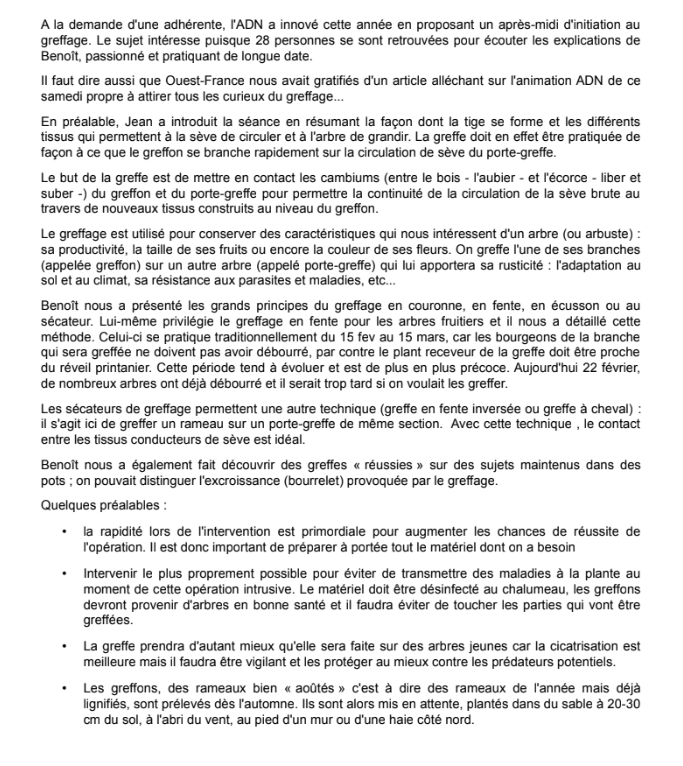 ADN – COMPTE-RENDU de l’après-midi initiation au greffage du samedi 22 février 2025 à Fontenai-les-