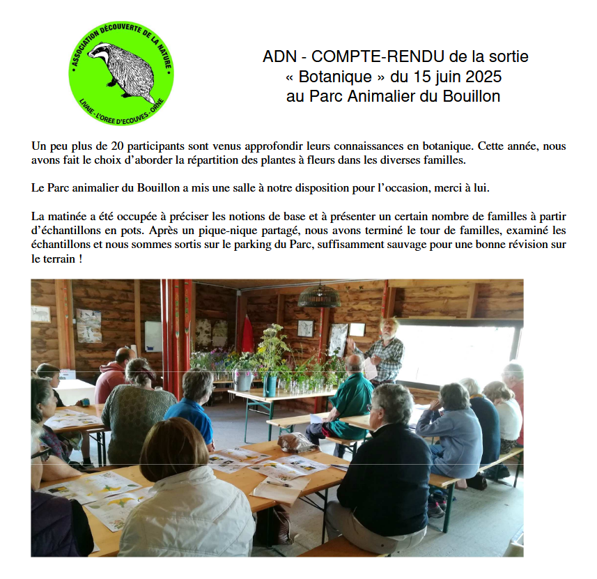 Compte-rendu de la sortie botanique du dimanche 15 juin 2025 au parc animalier du Bouillon. Orne