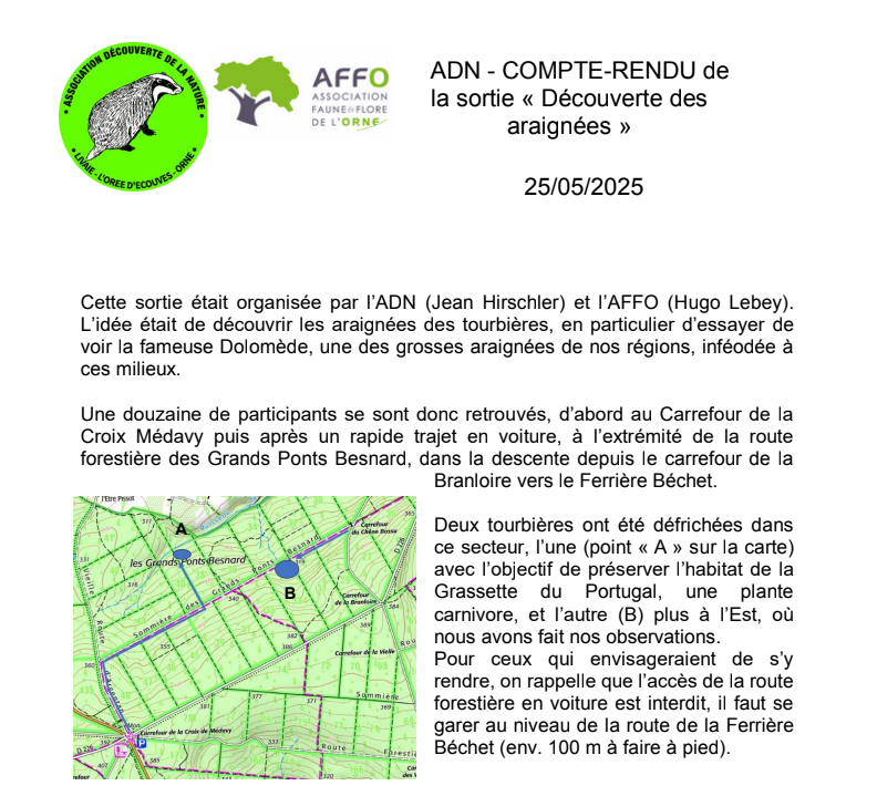 Compte-rendu de la sortie araignées Affo/ADN du dimanche 25 mai 2025.