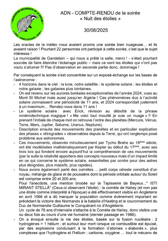 Vous l’attendez, le voici, le compte-rendu de la sortie à Ségrie-Fontaine.