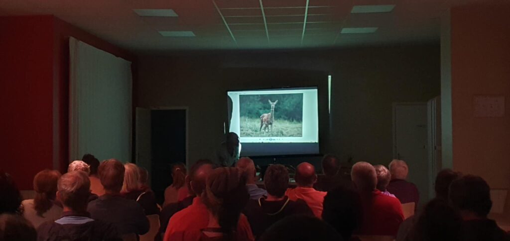 Stéphane a ensuite proposé un film avant petite une sortie en extérieur à quelques pas de la salle afin d’écouter le brame. Il n’était pas aussi intense que certaines fois, mais tout de même bien présent.