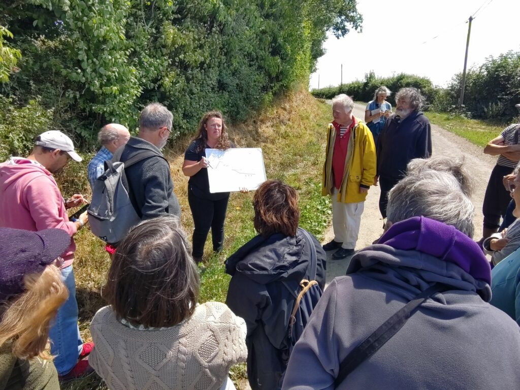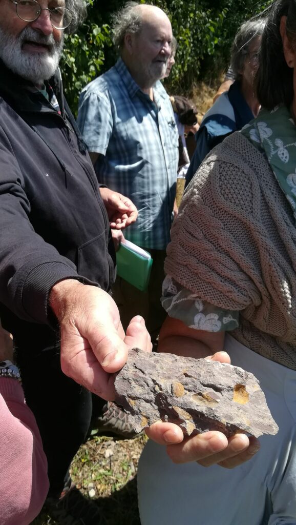 L’après-midi sur le terrain le soleil était de la partie sur le flanc nord du massif d’Ecouves : cheminement en covoiturage depuis Francheville jusqu’à Tanville avec plusieurs arrêts pour l’observation des roches et lecture de paysages.